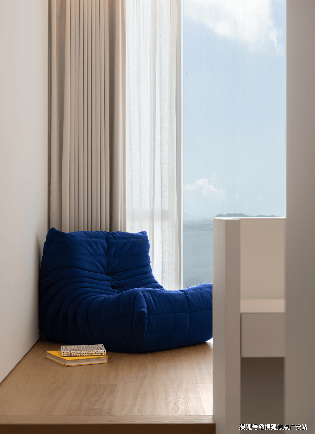 面朝城市海湾的书房,是原建建的餐厅区域,颠末巧妙后,成为了男仆人的专属领地。书房的空间宽阔而通透,通过超大标准的玻璃排闼,既让书房空间有了性,又保留了室第公共区域的宽阔性。