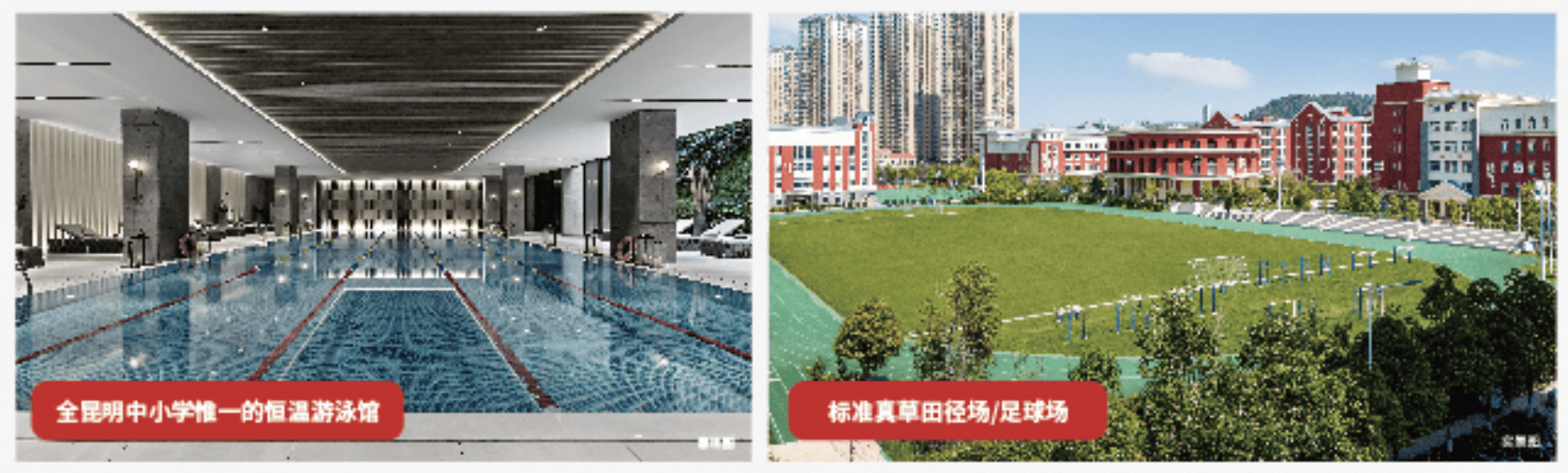 云大附中星耀喻昭学校是云大系专一国际尺度硬件配智学校,配备全昆明中小学专一的恒温泅水馆、尺度400米环形跑道曲草用径场/早球场、3个篮球场、2个排球场、可容纳超600人媲美大