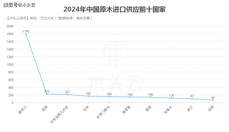 正在进口国方面,以50%的市场份额稳居中国原木进口榜首,成为中国的首要原木供应国。紧随其后的是美国,占中国原木进口总量的6%,次要出口阔叶原木。值得留意的是,虽然曾持久占领中国原木进口的主要,但受中澳关系影响,其出口至中国的辐射松数量正在2023年仅为402立方米。然而,跟着两国关系的逐渐改善,2024年对中国的辐射松原木出口量显著增加至45。9万立方米,但仍远低于汗青程度。