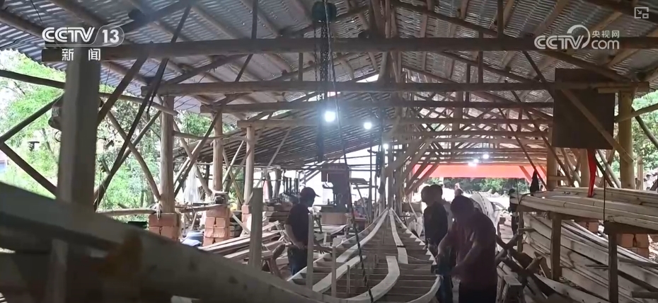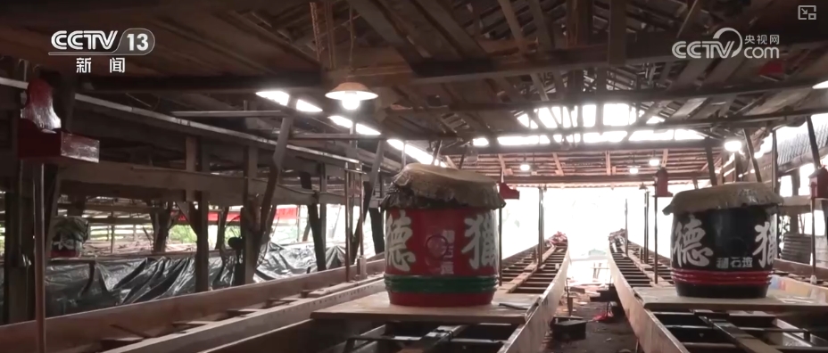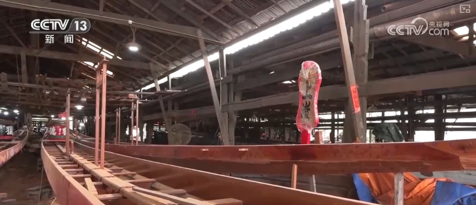 正在浙江瑞安市安阳街道,一艘龙舟的舟身曾经制做完成。龙舟制制师傅正详尽地对舟身裂缝进行涂胶处置,而另一艘龙舟的制做也正在紧锣密鼓地进行着。