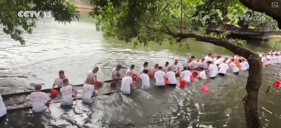 当天上午,泮塘村平易近们用锣鼓声“沉睡”的“老龙”。数十名村平易近齐心合力,将埋藏正在河底的龙船慢慢抬起。此次,起出的7条龙船,此中一条有400多年的汗青。