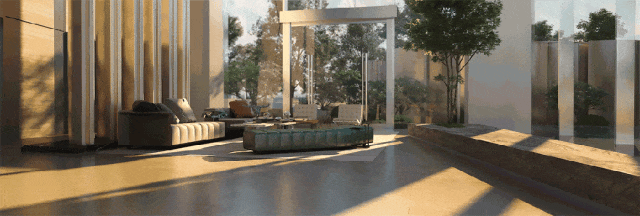取一楼大堂的空间延长。这是很伶俐的设想,无效的“拉阔了”私人园林的空间力量,约10。2m极致挑⾼⼤堂取超白玻璃的使用,恍惚了室表里的鸿沟,亦待大堂亦待园林感。颇有些迈阿密酒店和顶豪糊口气场。▽。